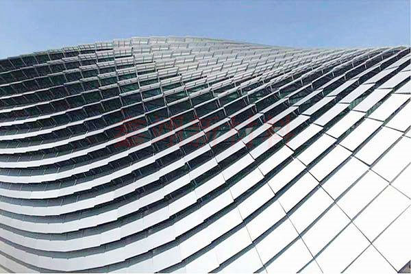 氧化鋁單板主要是采用了陽極氧化工藝制作的鋁單板,表面附有一層氧化膜,使用壽命長久,耐候性強。
